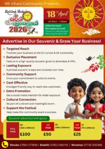 📖 Be part of the Milton Keynes Sri Lankan Festival 2026 souvenir programme and get your brand in front of hundreds of Sri Lankan & UK community members! 🇱🇰